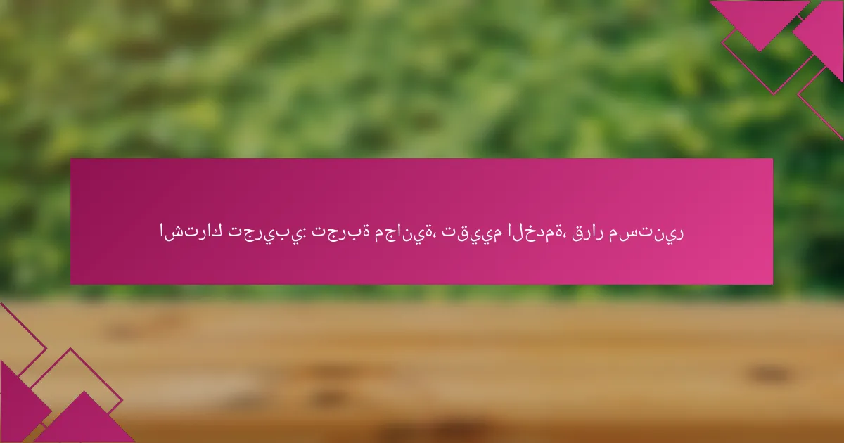 اتخاذ قرار مستنير بعد الاشتراك التجريبي يتطلب تقييم شامل للخدمة المقدمة. يجب أن تأخذ في اعتبارك الميزات، الأسعار، ومدى توافق الخدمة مع احتياجاتك الشخصية.