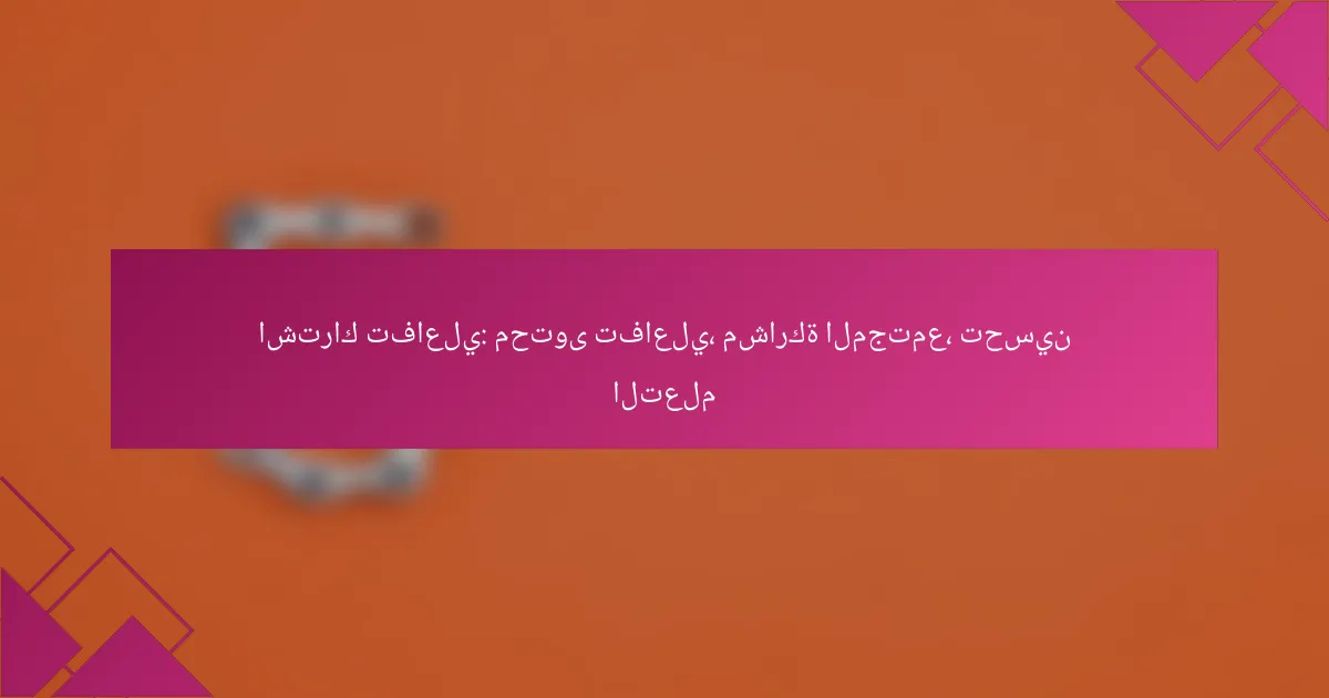 تحسين المحتوى التفاعلي يتطلب استخدام استراتيجيات فعالة لجذب المشاركة وتعزيز التعلم. من خلال دمج أدوات تفاعلية وتخصيص المحتوى، يمكن خلق تجربة تعليمية أكثر فعالية وملاءمة للأعضاء.