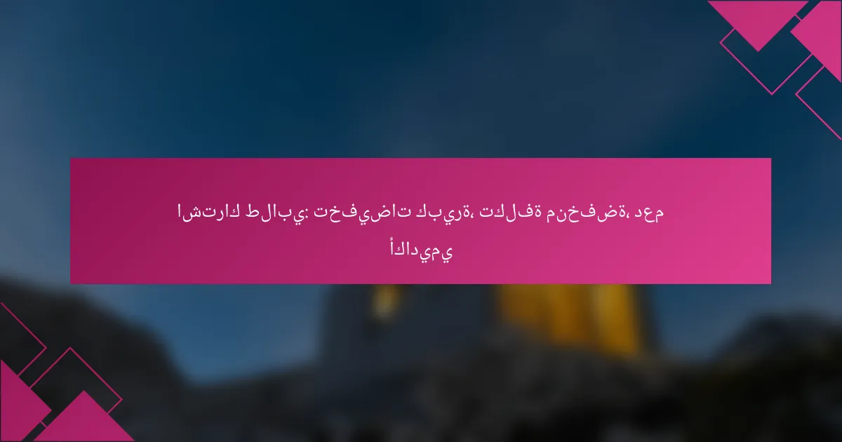 يوفر الاشتراك الطلابي مجموعة من الفوائد التي تشمل تخفيضات كبيرة على الخدمات والمنتجات، مما يجعل التكلفة منخفضة. بالإضافة إلى ذلك، يتيح للطلاب الوصول إلى دعم أكاديمي مخصص ومحتوى حصري يعزز من تجربتهم التعليمية.